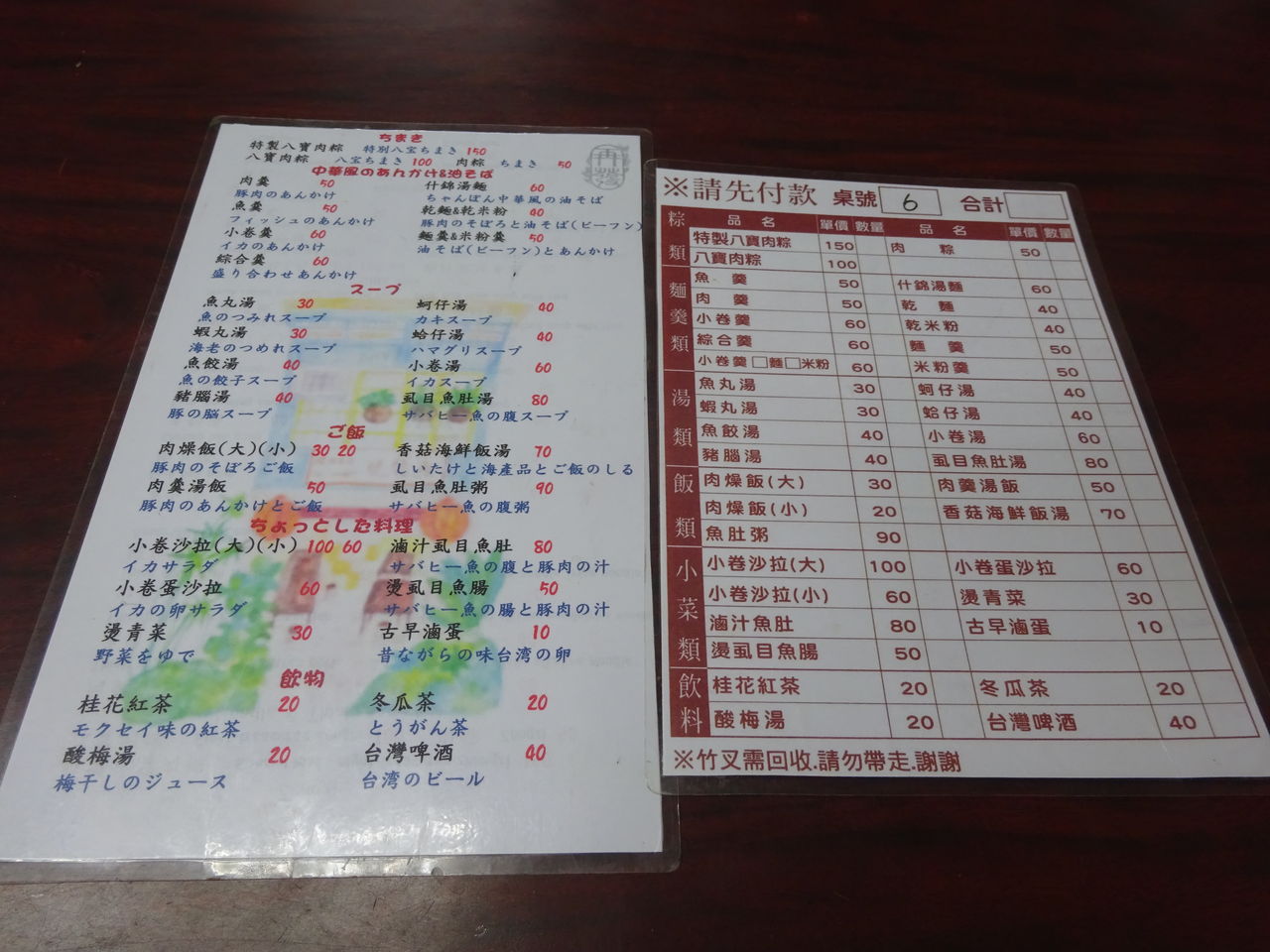 今回は牛肉湯(TWD110)と牛肉肉燥飯(TWD30)をチョイス。注文は紙があるのでそれに書いて渡す。注文時支払い。
