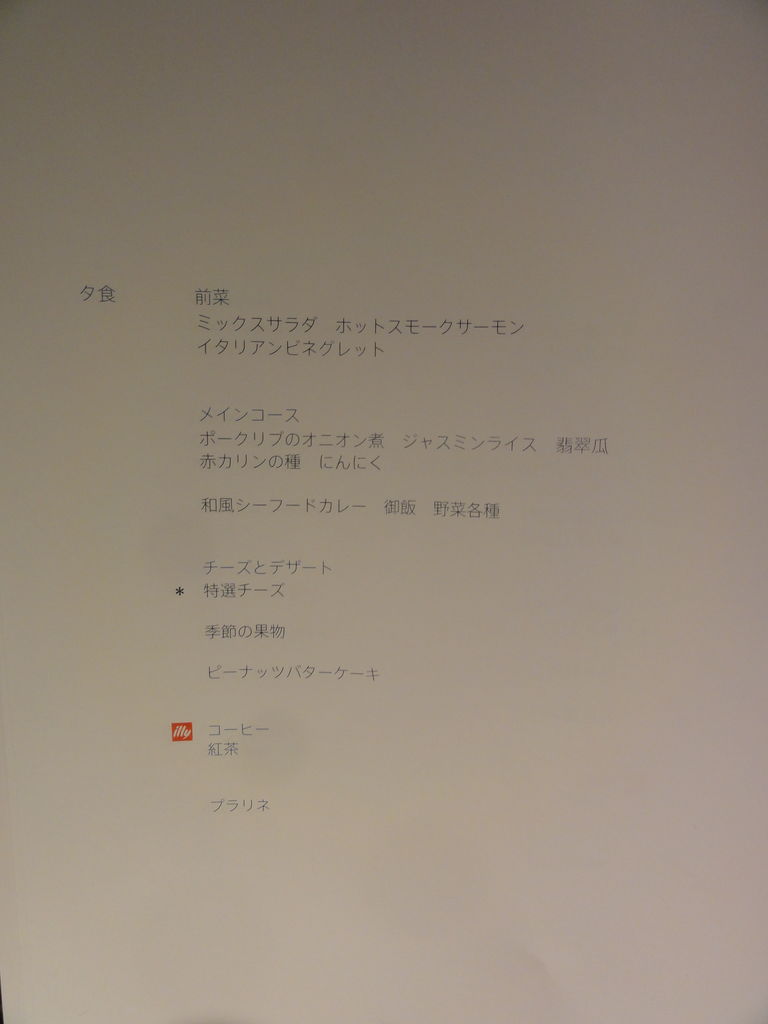 WINGのファーストクラスラウンジで、食事をもりっと食べる。