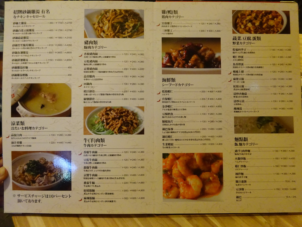 お食事メニュー。