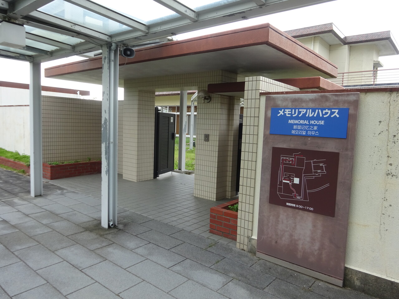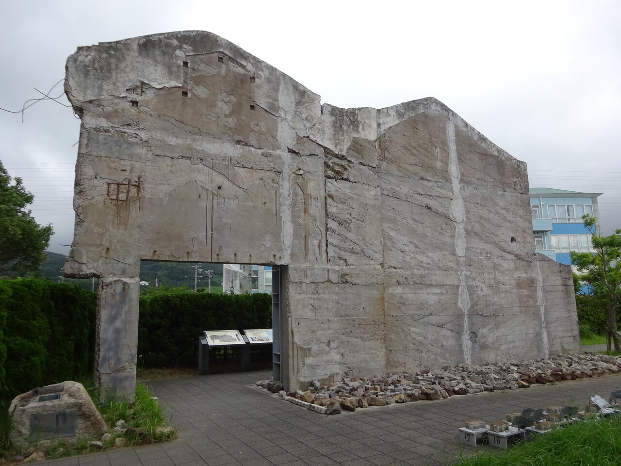 場所によっては看板と一緒に建物の基礎が残っているところもある。